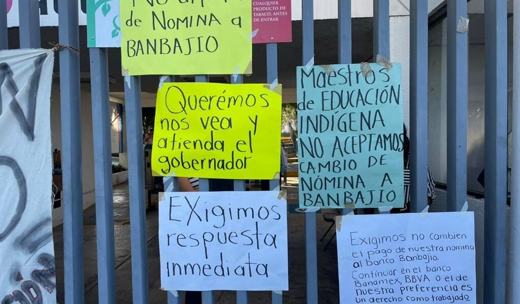 Docentes de educación indígena en el estado tomaron las instalaciones de la USEBEQ, piden que se respete la libertad de determinación y mantener su nómina con instituciones bancarias como BBVA, Banamex u otro de su preferencia. Éste es el segundo día en el que docentes se manifiestan, luego de que este lunes se manifestaran en palacio de gobierno por la