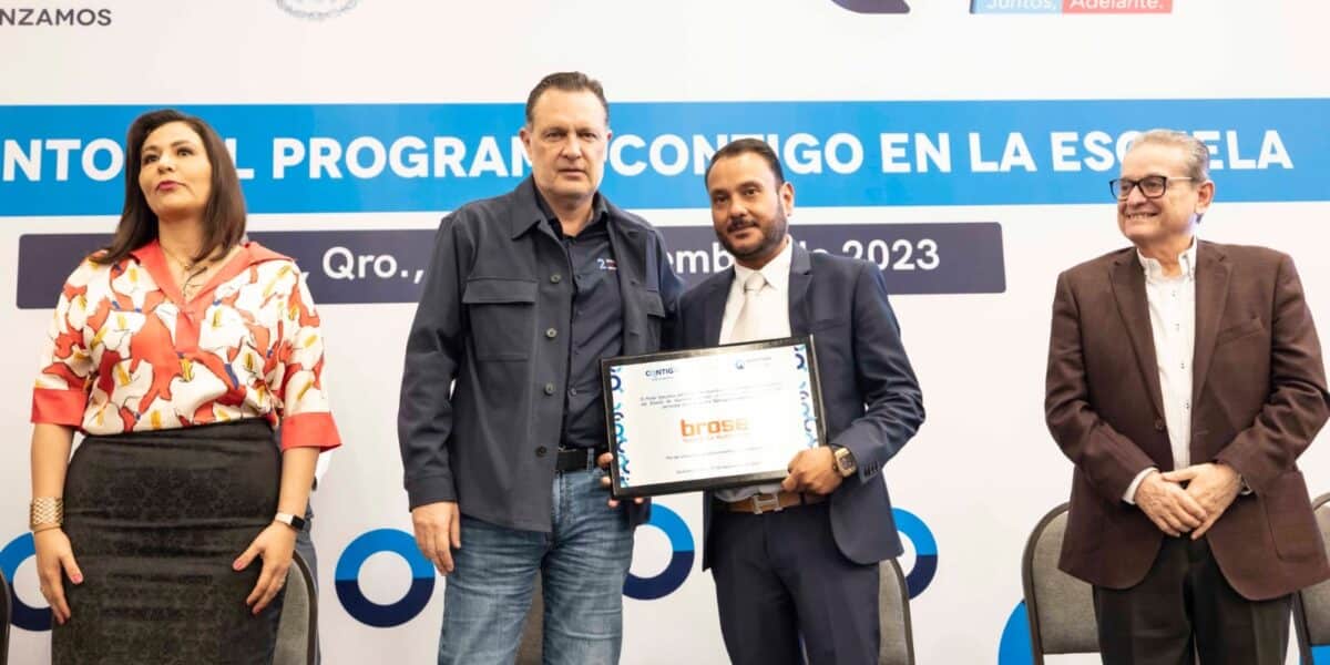 El Gobernador lanzó la estrategia que busca unir esfuerzos entre actores del sector público o privado, con jornadas de limpieza y mantenimiento. Proyectan intervenir 30 escuelas de Corregidora, El Marqués, Querétaro y San Juan del Río. BROSE donó equipos de cómputo para la Primaria Constitución de 1917. Además, anunció la construcción de la cuarta planta de la compañía en el