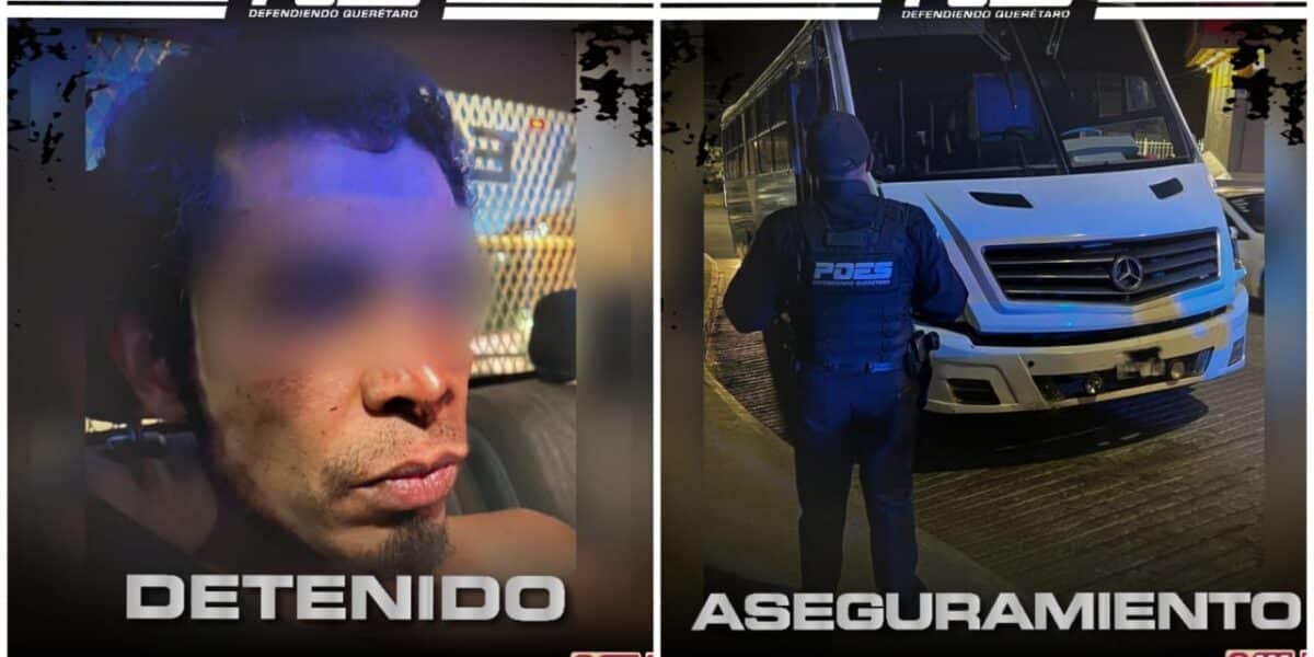 Un individuo que robó un camión de transporte de personal, fue detenido por POES minutos después de cometer el acto en el municipio de El Marqués. En atención a una llamada ciudadana que se recibió en la Línea de Emergencias 911, personal policial fue canalizado a la atención de un robo en proceso. Fue en la carretera 200 que elementos