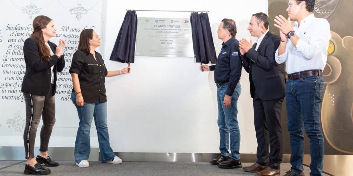 En el marco de las actividades por el vigésimo aniversario del Centro Educativo y Cultural del Estado de Querétaro Manuel Gómez Morin, el gobernador, Mauricio Kuri González, encabezó la develación de una placa conmemorativa, la cual expresa un reconocimiento a este espacio que inspira a contar historias y crear nuevas perspectivas en educación, ciencia y tecnología, con un gran talento