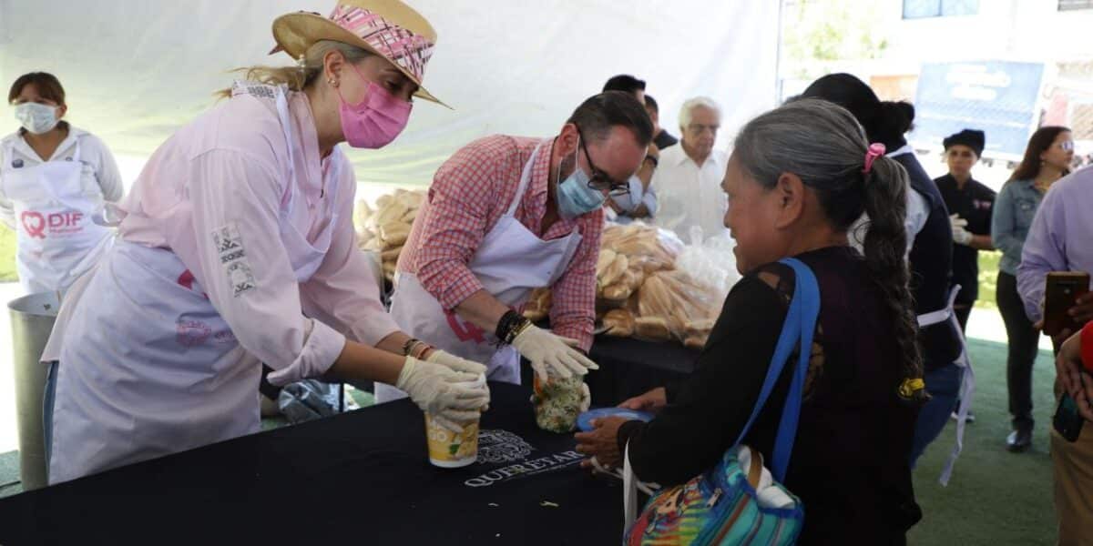 El Presidente Municipal de Querétaro, Luis Nava, acompañó a su esposa y Presidenta del Patronato Sistema Municipal DIF, Arahí Domínguez, al Parque de la colonia 10 de abril en la Delegación Municipal Félix Osores Sotomayor, para encabezar la Jornada “Comedores Contigo” en la que además de brindar cerca de 300 porciones de alimentos, llevó información de 5 años de