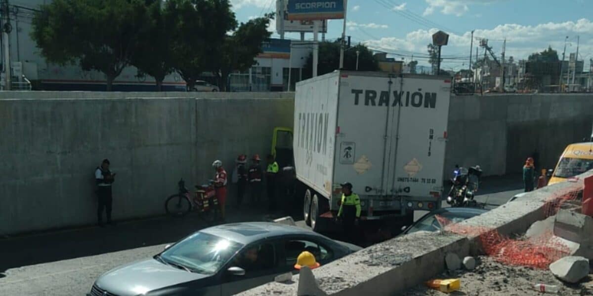 La tarde de este domingo el conductor de un camión pesado estrenó uno de los nuevos puentes subterráneos del Paseo 5 de Febrero. Según testigos el conductor circulaba sobre carriles laterales en dirección a Juriquilla, cuando perdió el control y salió de camino cayendo a los carriles centrales, para terminar impactadose contra el muro de contención. Tras el reporte a