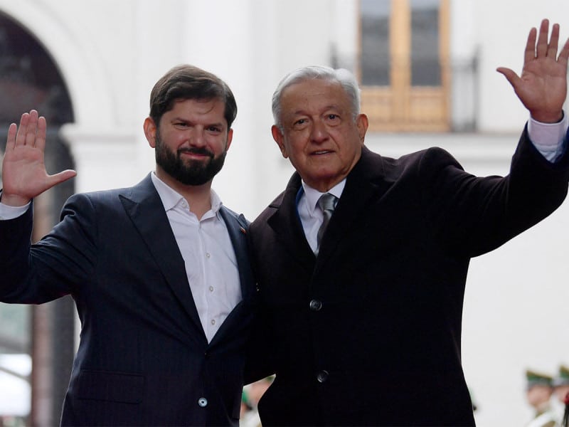 El presidente de Chile, Gabriel Boric recibió este domingo en visita oficial al presidente Andrés Manuel López Obrador. La recepción al titular del Ejecutivo mexicano se dio en la Plaza de la Constitución, en donde se tocaron los himnos nacionales de ambos países. Posteriormente, los presidentes ingresaron al Palacio de La Moneda, sede oficial del gobierno de Chile. Ya en
