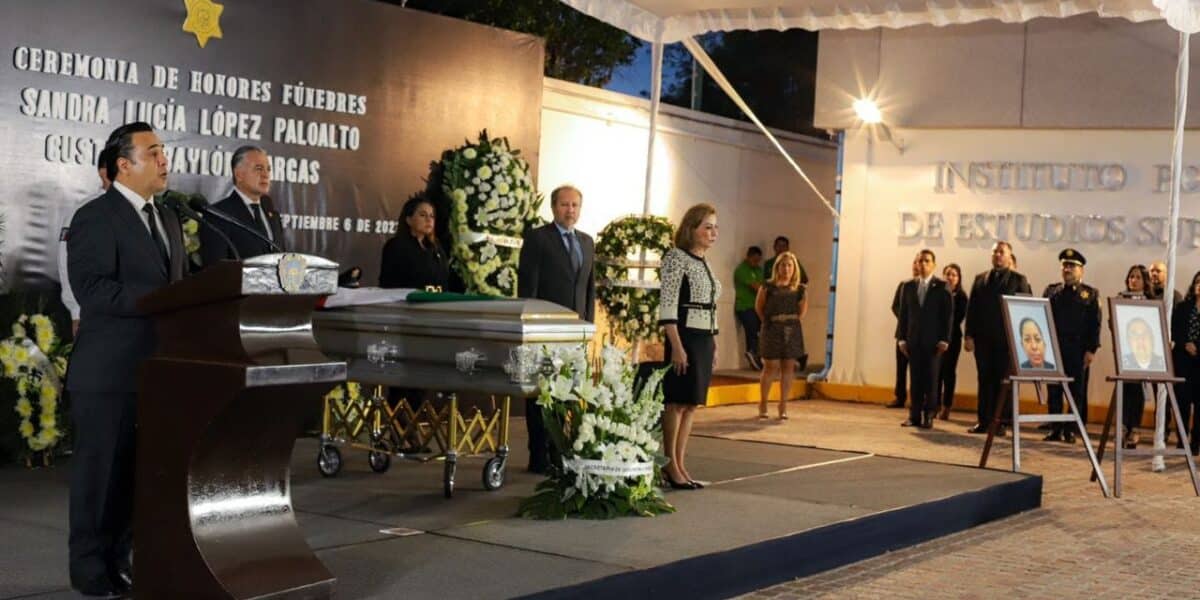 El Presiente Municipal de Querétaro, Luis Nava, en compañía de la Secretaria de Gobierno del Estado de Querétaro, Guadalupe Murguia Gutiérrez, encabezó la Guardia de Honor durante el Homenaje que se le realizó a Sandra Lucía López Paloalto y Gustavo Baylón Vargas, Policías de la Secretaría de Seguridad Pública Municipal que fallecieron el pasado martes 6 de septiembre al cumplir