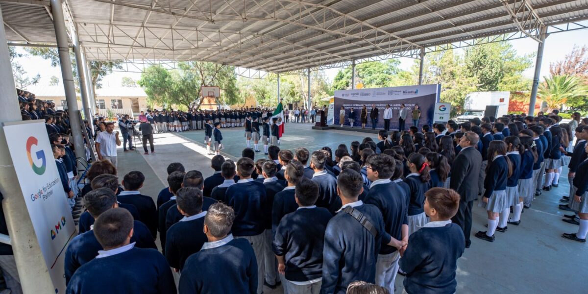 El presidente municipal de El Marqués, Enrique Vega Carriles, acompañado de la secretaria de Educación del Estado, Martha Elena Soto Obregón, realizó los Honores a la Bandera y la entrega del equipo informático para laboratorios de cómputo, “Aula Google”. La escuela beneficiada con 40 computadoras, fue la telesecundaria “Ahuizotl”, las cuales servirán para complementar los estudios de 570 alumnos del