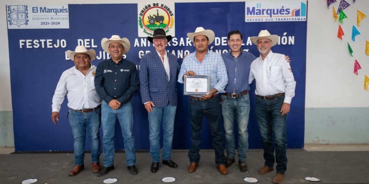 El Presidente Municipal de El Marqués, Enrique Vega Carriles y el Secretario de Desarrollo Agropecuario del Estado, Rosendo Anaya Aguilar acudieron a la celebración del 36 Aniversario de la Unión de Ejidos Graciano Sánchez, que congregó a más de 300 campesinos en las instalaciones de la unión de ejidos. En su mensaje, Vega Carriles agradeció el poder convivir con