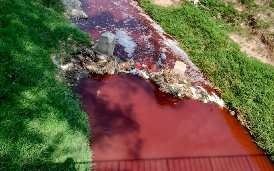 Este jueves vecinos de la colonia El Sol, ubicada en la zona norte de la capital, denunciaron que el agua del dren El Arenal se tiñó de rojo, presuntamente por descargas de químicos de empresas. Durante una reunión con José Luis Peña Ríos, procurador estatal de Protección al Medio Ambiente y Desarrollo Urbano, los vecinos reportaron que hace dos meses