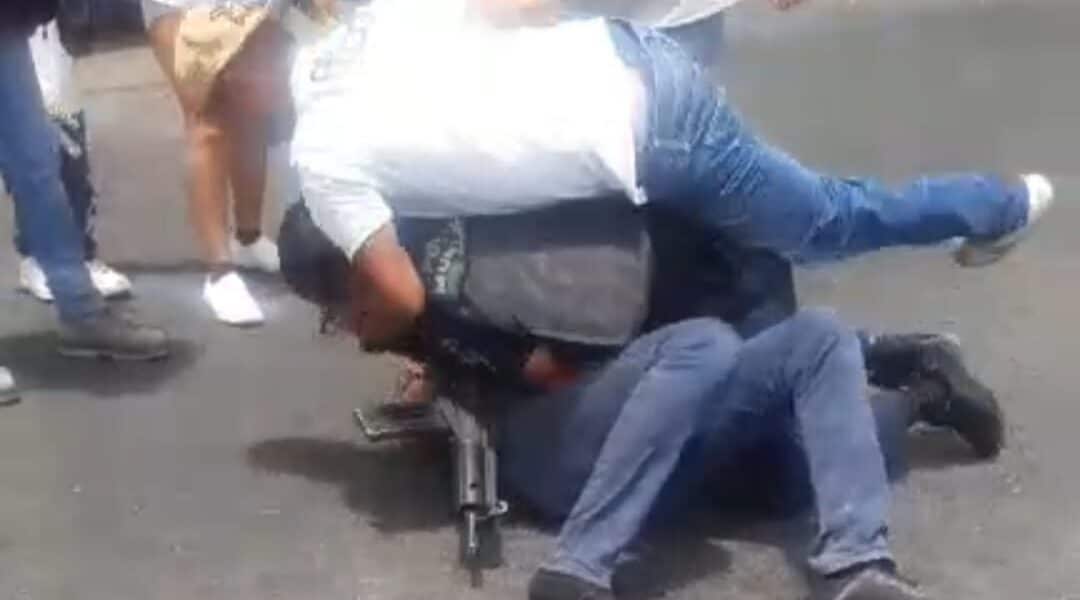 Un elemento de la policía municipal fue agredido, cuando realizaba la detención de un sujeto agresivo, quien habría chocado una patrulla de la policía municipal en Prolongación Bernardo Quintana. En un vídeo difundido en redes sociales, se observa al policía forcejear con el ahora detenido en el piso, cuando al menos tres personas intervienen y tratan de quitar al policía