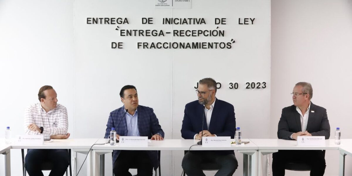 El Presidente Municipal de Querétaro, Luis Nava, acompañó al Diputado Local por el Segundo Distrito, Manuel Pozo Cabrera, en la entrega de la iniciativa de Ley “Entrega-Recepción de Fraccionamientos en el Estado de Querétaro”, en la que participó el Municipio de Querétaro para facilitar la atención con servicios y obras a los fraccionamientos y mejorar la calidad de vida