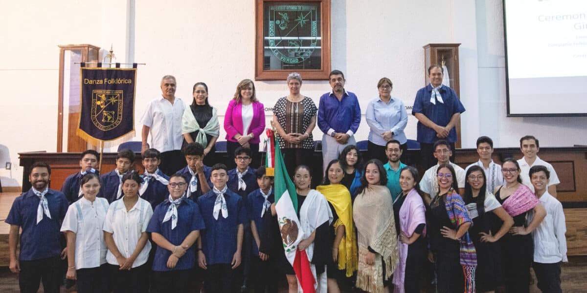 Autoridades de la Universidad Autónoma de Querétaro (UAQ) abanderaron a la Embajada Cultural Universitaria integrada por la Compañía Folklórica de la UAQ y la Orquesta Típica “Somos UAQ”, que representarán a Querétaro y México en los 37º Encuentros Folklóricos Internacionales 2023, que se realizarán en Lublin, Polonia del 8 al 12 de julio y donde participan ensambles de España, Indonesia,
