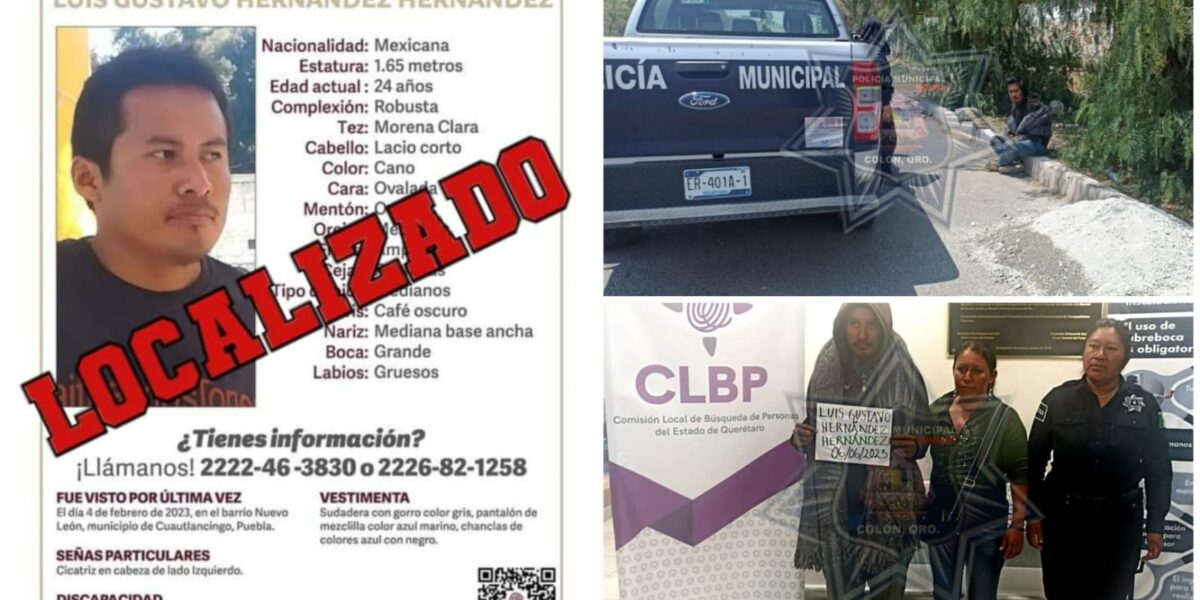 Elementos de la policía municipal de Colón, localizaron a un joven que se encontraba en calidad de desaparecido en el Estado de Puebla desde hace 4 meses. Elementos de la Secretaría de Seguridad Pública Municipal de Colón realizaron el acercamiento correspondiente con un masculino en situación de calle en nuestro municipio de Colón, llevando a cabo el primer contacto derivado