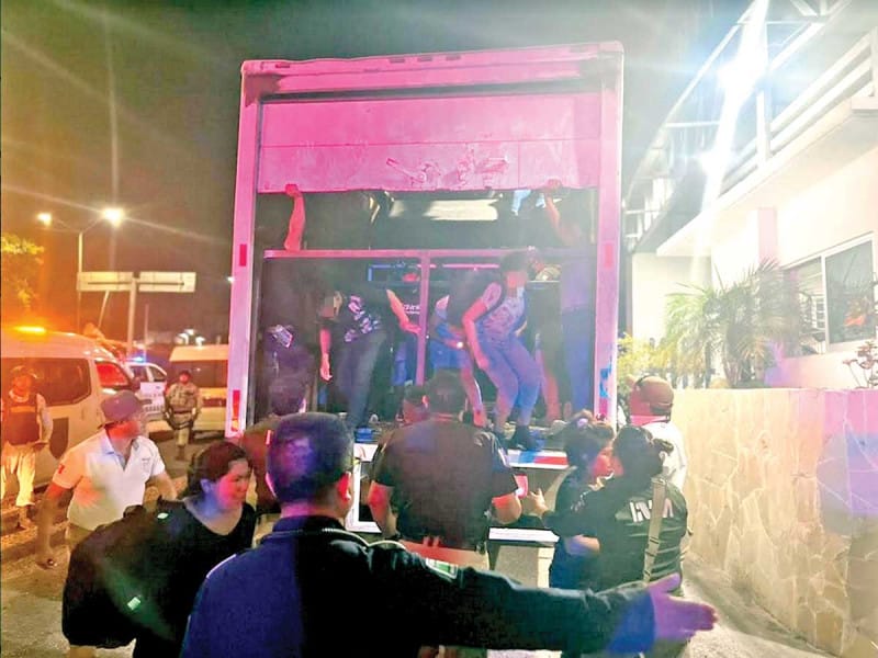 RESCATAN A MIGRANTES HACINADOS EN TRACTOCAMIÓN