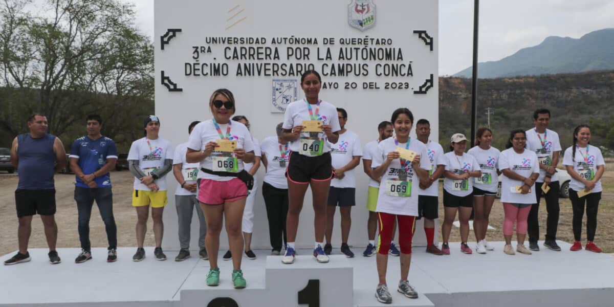 Para celebrar el décimo aniversario del campus Concá de la Universidad Autónoma de Querétaro (UAQ), estudiantes, docentes, directores, coordinadores, administrativos, trabajadores y sociedad en general participaron en la 3° Carrera por la Autonomía que se realizó en aquellas instalaciones ubicadas en el municipio de Arroyo Seco. Teresa García Gasca, rectora de la Alma Mater queretana reconoció el trabajo detrás de