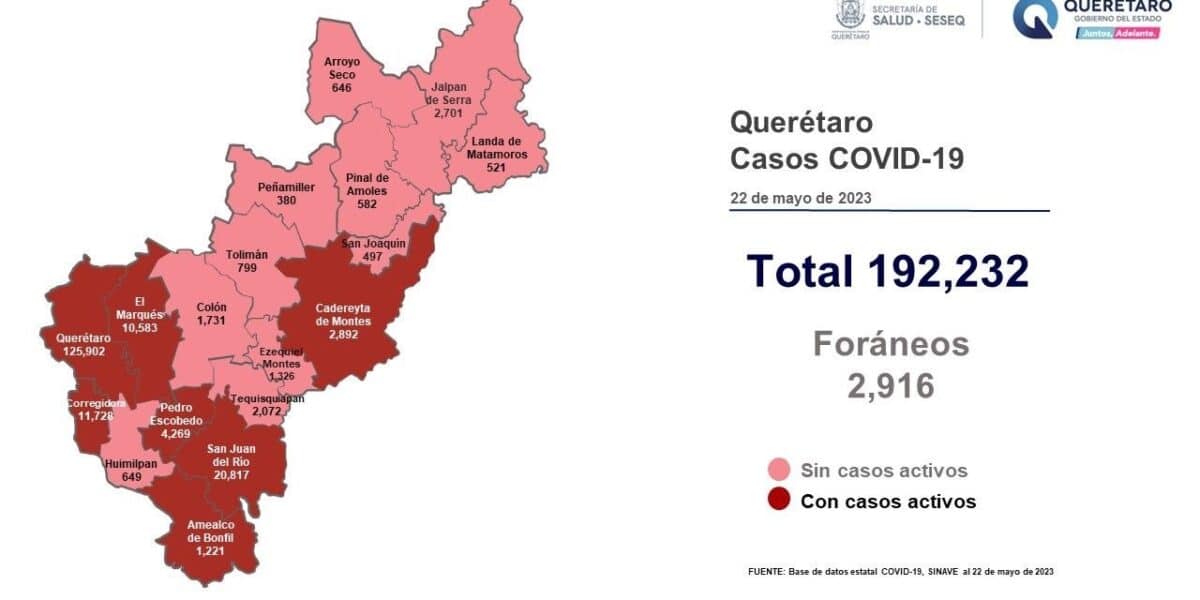 La Secretaría de Salud de Querétaro reportó este lunes cero defunciones por COVID-19 y se reportó que en los últimos siete días se han sumado 277 casos de la enfermedad en el estado se trata de 165 mujeres y 112 hombres. El registro acumulado es de 192 mil 232 casos; 54% son mujeres y 46% son hombres.   Se dio