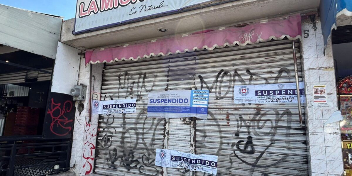 Pese a contar con la licencia de funcionamiento al corriente, la paletería que se encuentra ubicada frente a la prepa Norte fue suspendida por irregularidades en materia de Protección Civil, reiteró Arturo Molina Zamora, secretario de gobierno del municipio de Querétaro. El funcionario mencionó que entre los temas que no cumplían era la revisión eléctrica, no contaba con botiquín con