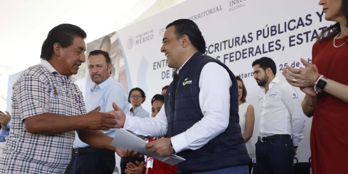 El Presidente Municipal de Querétaro, Luis Nava, acompañó al Gobernador del Estado, Mauricio Kuri González, a la entrega de Escritura Públicas y Títulos de Propiedad de Programas Federales, Estatales y Municipales para habitantes de 12 municipios del estado, entre los que se benefició a 205 familias de la capital que además de contar con certeza jurídica de su patrimonio, ahora