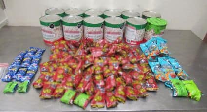 DECOMISAN METANFETAMINAS DENTRO DE LATAS DE COMIDA EN CAMIONETA MEXICANA
