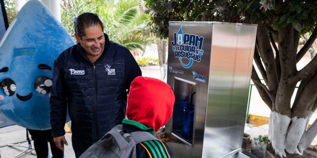 Con el objetivo de promover la salud, el ahorro económico familiar y el cuidado del medio ambiente, la Junta de Agua Potable y Alcantarillado Municipal (JAPAM) realizó la entrega de bebederos en instituciones educativas de la comunidad de Ojo de Agua, beneficiando a niñas y niños del Jardín de Niños Rosa Agazzi y de la Escuela Primaria Rafael Molina. La