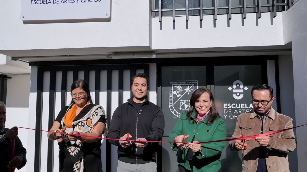 El presidente municipal de Querétaro, Felifer Macías, acompañó a la rectora de la Universidad Autónoma de Querétaro, Silvia Amaya Llano, a la inauguración de la nueva sede de la Escuela de Artes y Oficios de la UAQ, ubicada en la colonia Carretas, Delegación Centro Histórico, espacio que tiene como objetivo ampliar el acceso a la formación en técnicas artísticas y