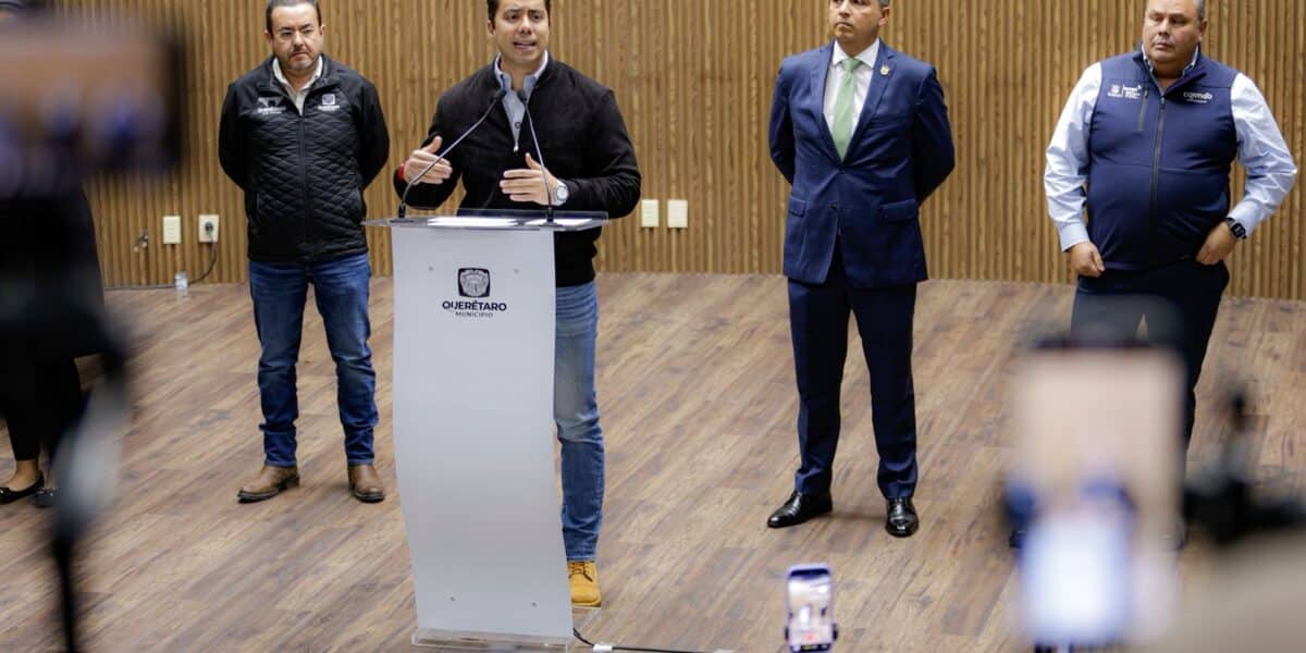 El presidente municipal de Querétaro, Felifer Macías, junto con el secretario de Gobierno, Eric Gudiño Torres; el director de la Agencia de Movilidad del Estado de Querétaro, Gerardo Cuanalo Santos; y el secretario de Movilidad, Pedro Ángeles Luján, dieron a conocer el operativo que se implementará con motivo del inicio de la obra federal del Tren México–Querétaro, con el objetivo