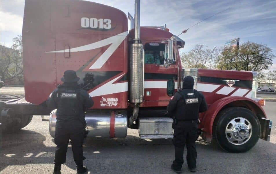 Derivado de la implementación de la tecnología del Complejo de Seguridad Rhino, Policías Estatales fueron alertados sobre un tractocamión con reporte de robo que circulaba en en el municipio de Querétaro, por lo que se activó un operativo focalizado con personal policial en campo. La unidad fue interceptada en Paseo de la República, donde los tripulantes no lograron acreditar la