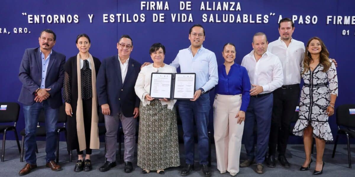 El alcalde, Chepe Guerrero, firmó la alianza “Entornos y Estilos de Vida Saludables a Paso Firme” con la Secretaría de Salud del Estado, con el objetivo de impulsar acciones para que los trabajadores del Gobierno Municipal de Corregidora adopten un estilo de vida saludable, y así, alcanzar la certificación como Entorno Laboral Saludable, principalmente en las instalaciones de la Secretaría
