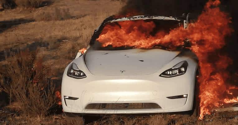 TESLA SE INCENDIA Y CALCINA A SUS OCUPANTES