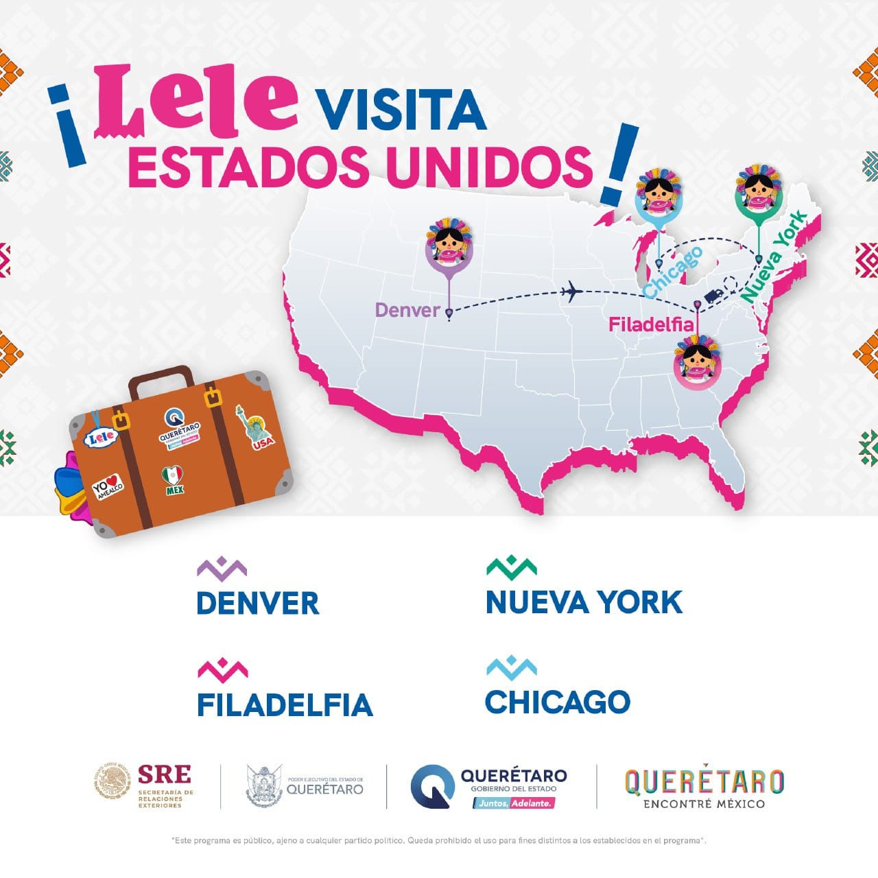 El 30 de abril, Lelé llegará al Jefferson Square, en la ciudad de Filadelfia, donde su presencia engalanará las celebraciones por el día del niño para la comunidad mexicana y al público en general. En esta misma ciudad, el 1 de mayo, la muñeca artesanal queretana estará en el Capitolio del estado de Pensilvania.