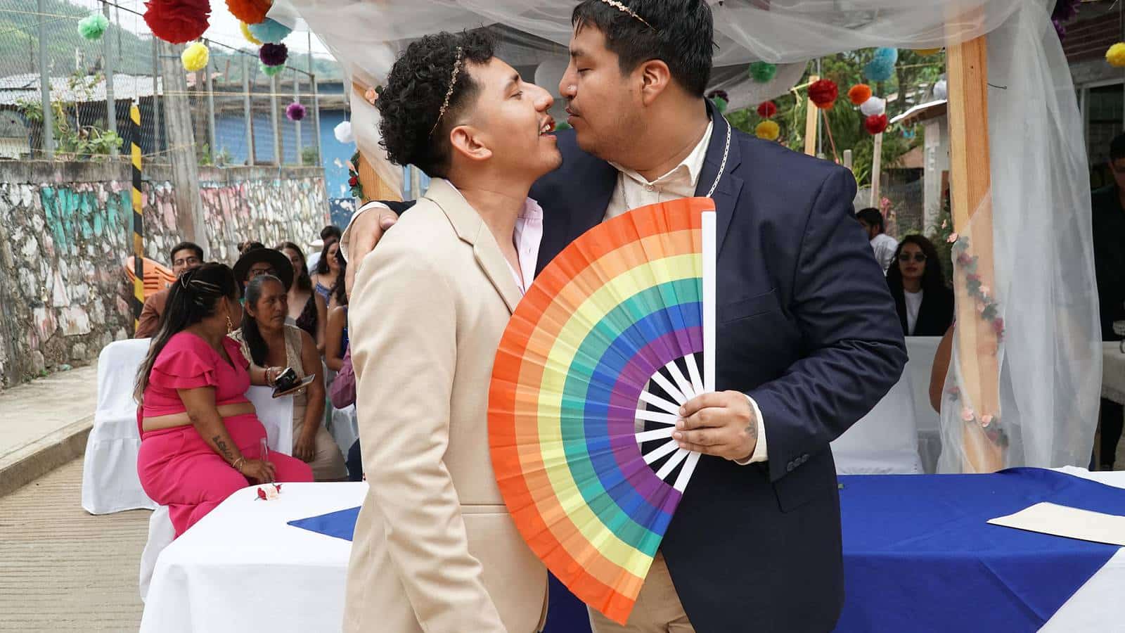La boda civil de Adrián y Luis Fernando de 28 y 31 años, respectivamente, celebrado en Estancia de Morelos, Oaxaca, fue el primer matrimonio igualitario llevado a cabo en una comunidad perteneciente a la comunidad mixe o ayuuk, una voz indígena que significa gente del idioma florido que habita en la región geográfica de la Sierra Norte.