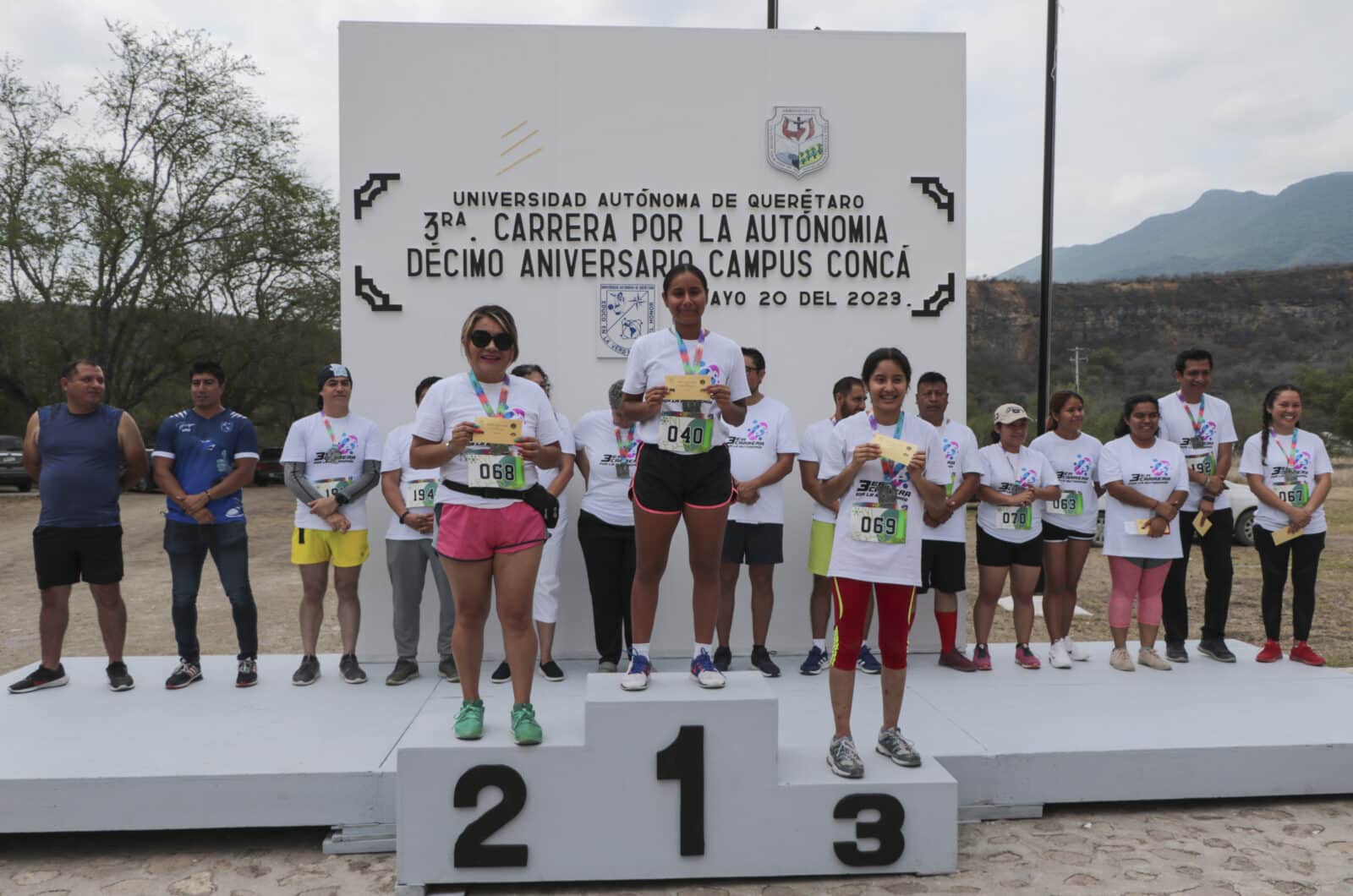 Para celebrar el décimo aniversario del campus Concá de la Universidad Autónoma de Querétaro (UAQ), estudiantes, docentes, directores, coordinadores, administrativos, trabajadores y sociedad en general participaron en la 3° Carrera por la Autonomía que se realizó en aquellas instalaciones ubicadas en el municipio de Arroyo Seco.