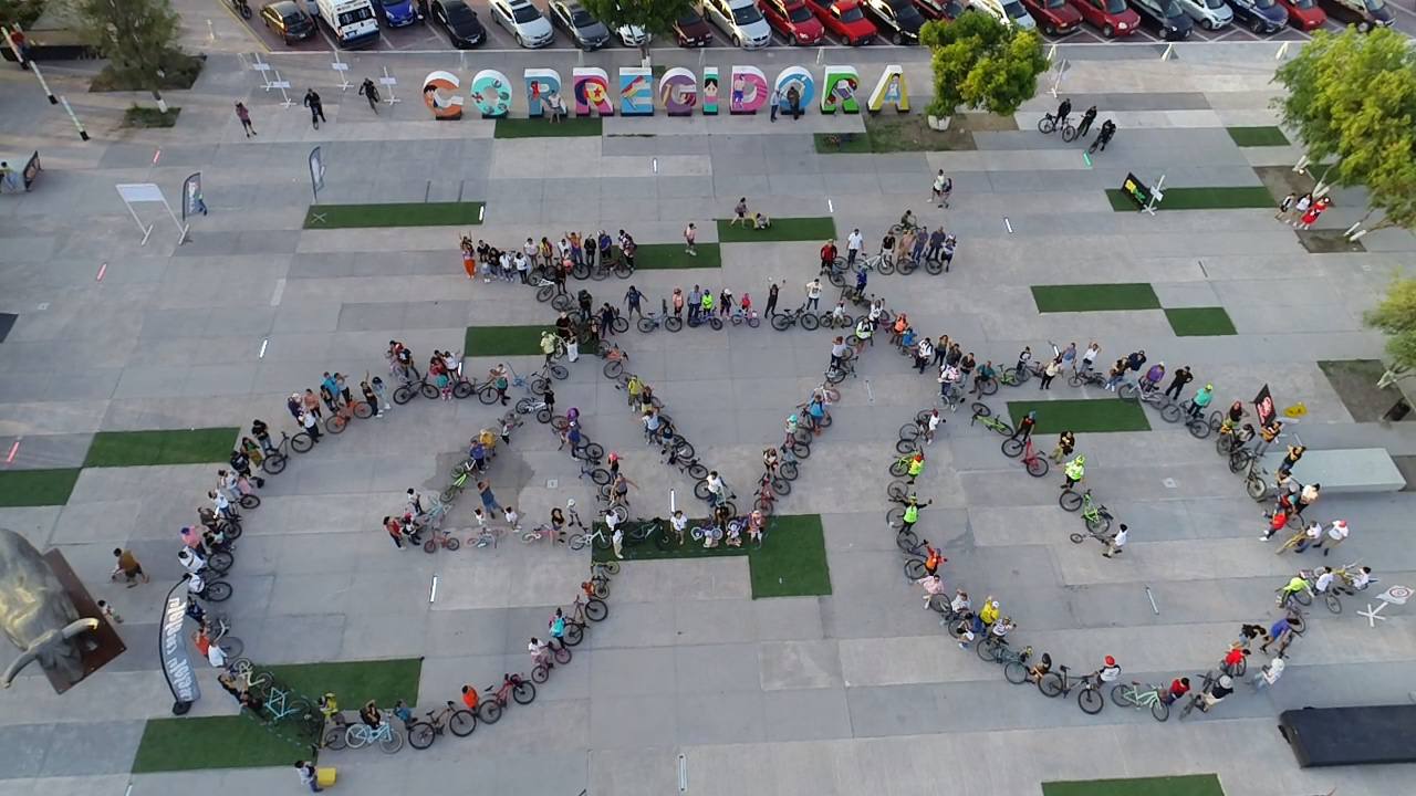 En el marco del Día Internacional de la Bicicleta, se llevó a cabo una serie de actividades en el Municipio de Corregidora, que incluyeron la formación de una bici monumental con la participación de casi 300 personas, que después disfrutaron del “Bicinema”, con la función de E.T. el Extraterrestre, en la Plaza Gran Cué.