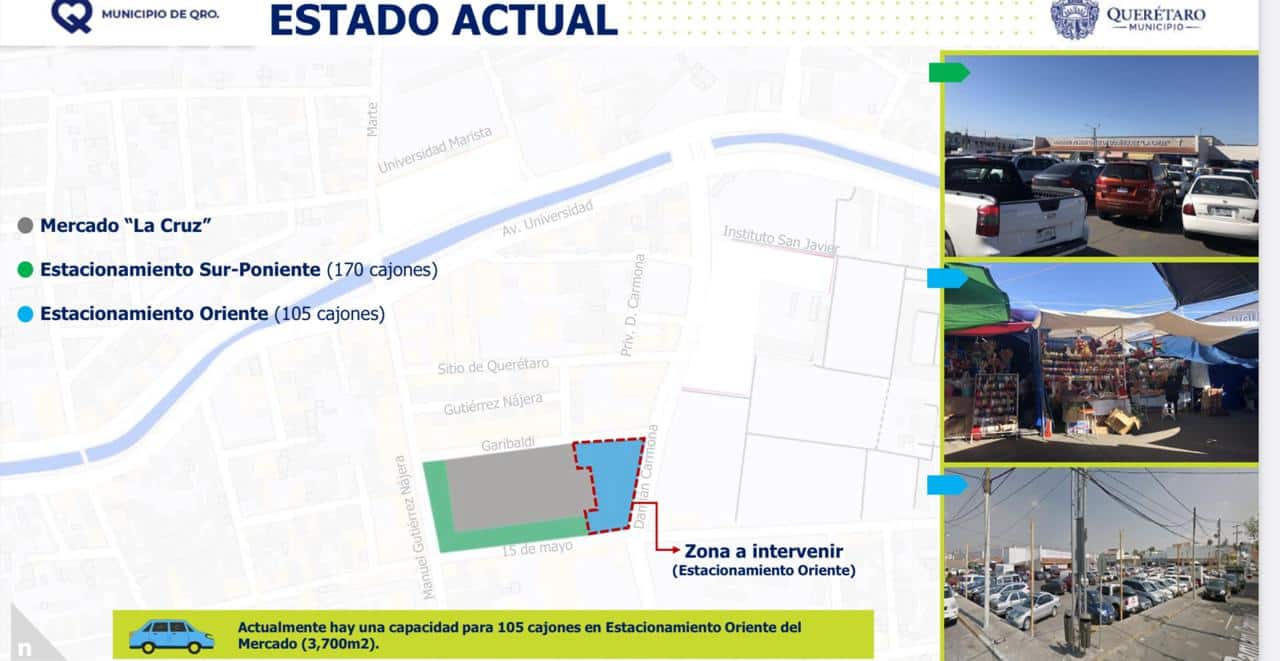 Arturo Molina Zamora, secretario de Gobierno del municipio de Querétaro, indicó que el pasado 8 de junio los tianguistas del mercado aceptaron el proyecto del estacionamiento, por lo que continuarán los trabajos del proyecto en cuanto a estudios de suelo, entre otros. Además, recordó que el 24 de abril se obtuvo el visto bueno de los locatarios.
