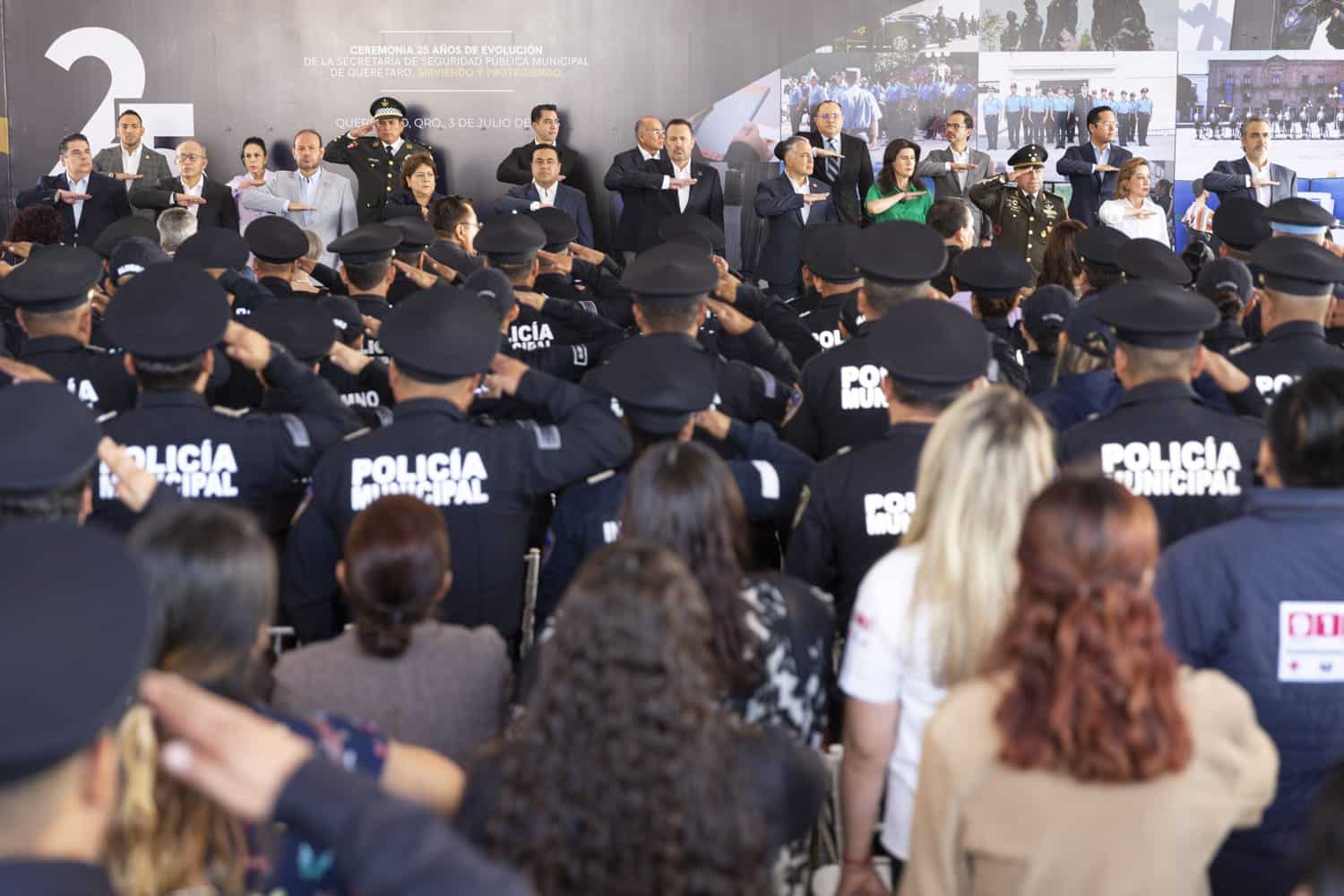 El edil capitalino celebró los 25 años de Evolución, Sirviendo y Protegiendo a Querétaro de la corporación municipal; también refrendó su compromiso de cuidar a los habitantes de la demarcación y a trabajar en equipo a favor de la seguridad.