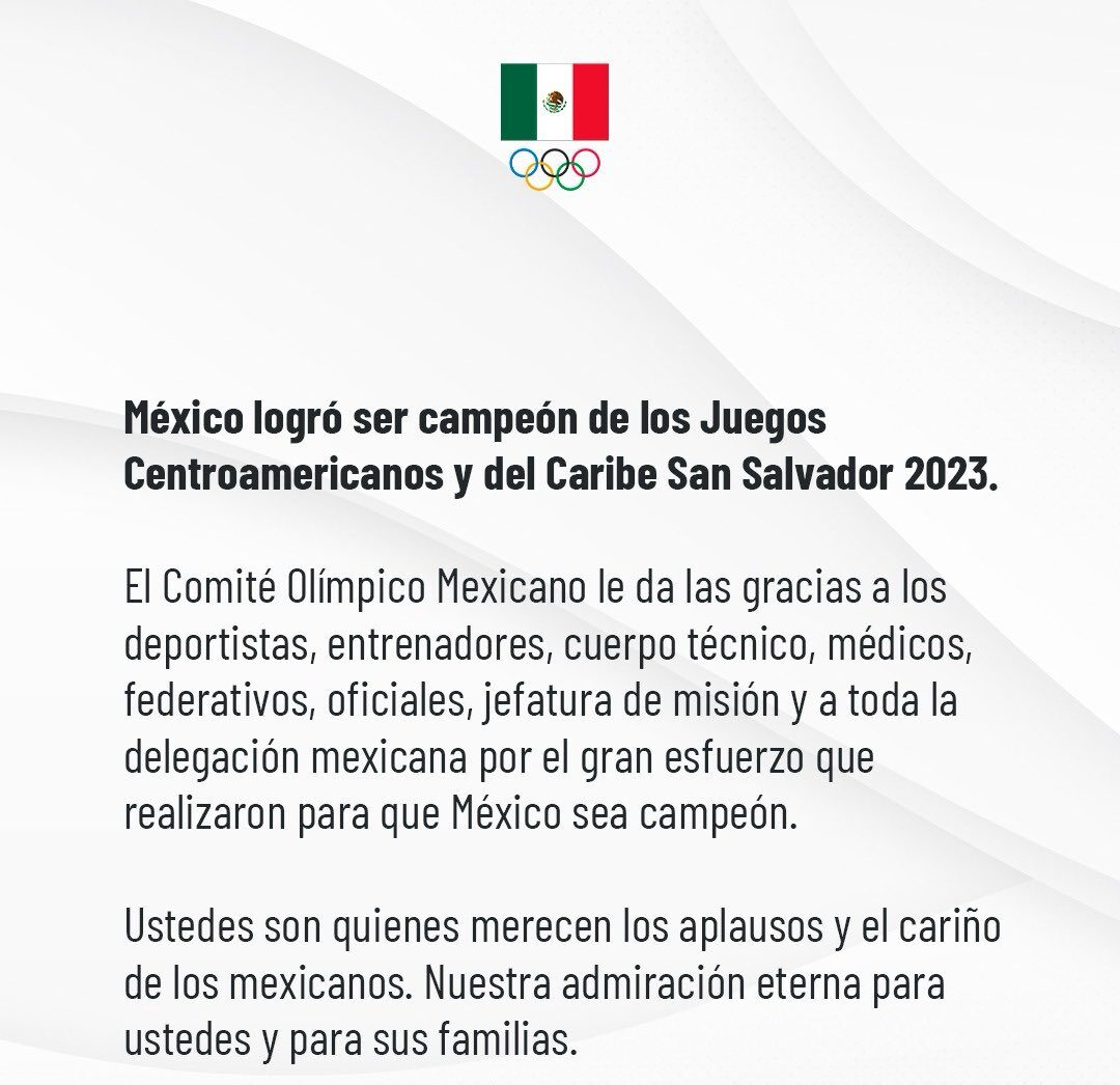 Los Juegos Centroamericanos y del Caribe San Salvador 2023concluyeron este sábado con Méxicoen la cima del medallero, con 145 medallas de oro, 108 de plata y 100 de bronce, para un total de 353, su mejor marca desde Mayagüez 2010, cuando logró 384.