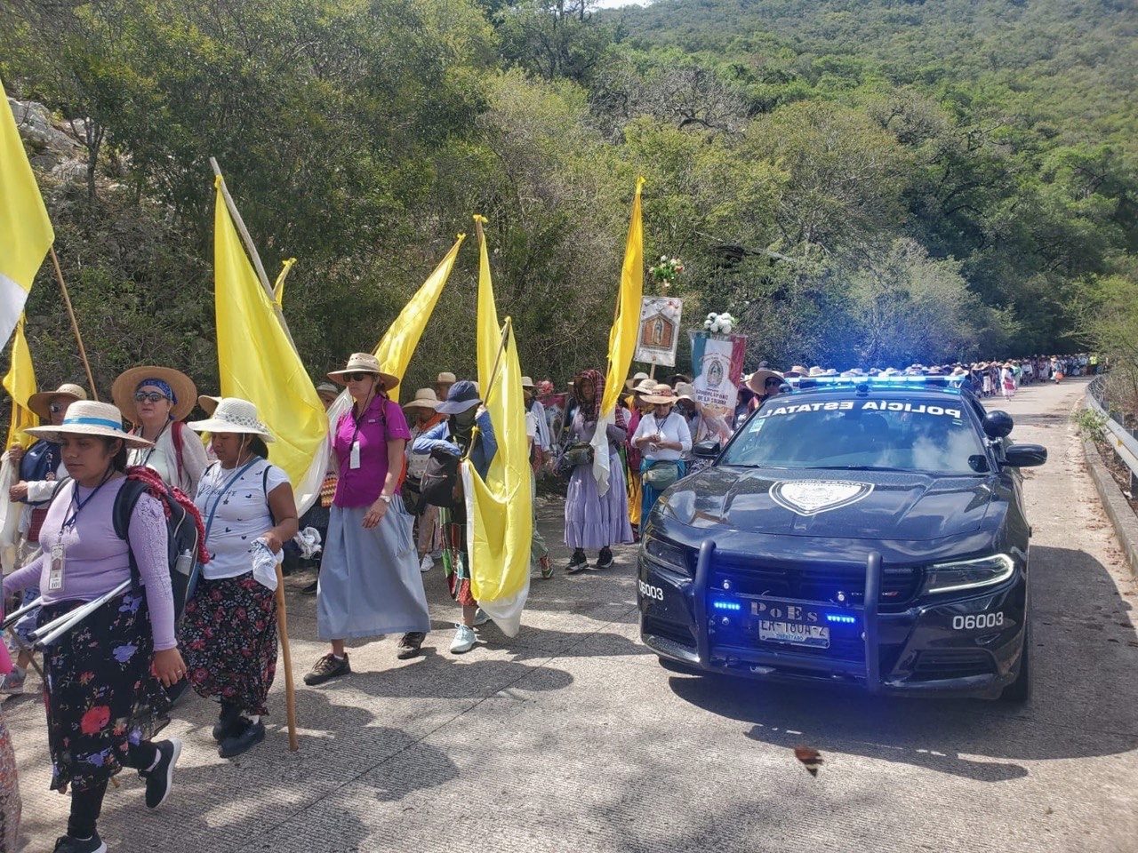 Para estos diferentes bloques de peregrinos y peregrinas que avanzan a través del territorio serrano de nuestro estado, se ha dispuesto de 74 elementos para la atención y acompañamiento.