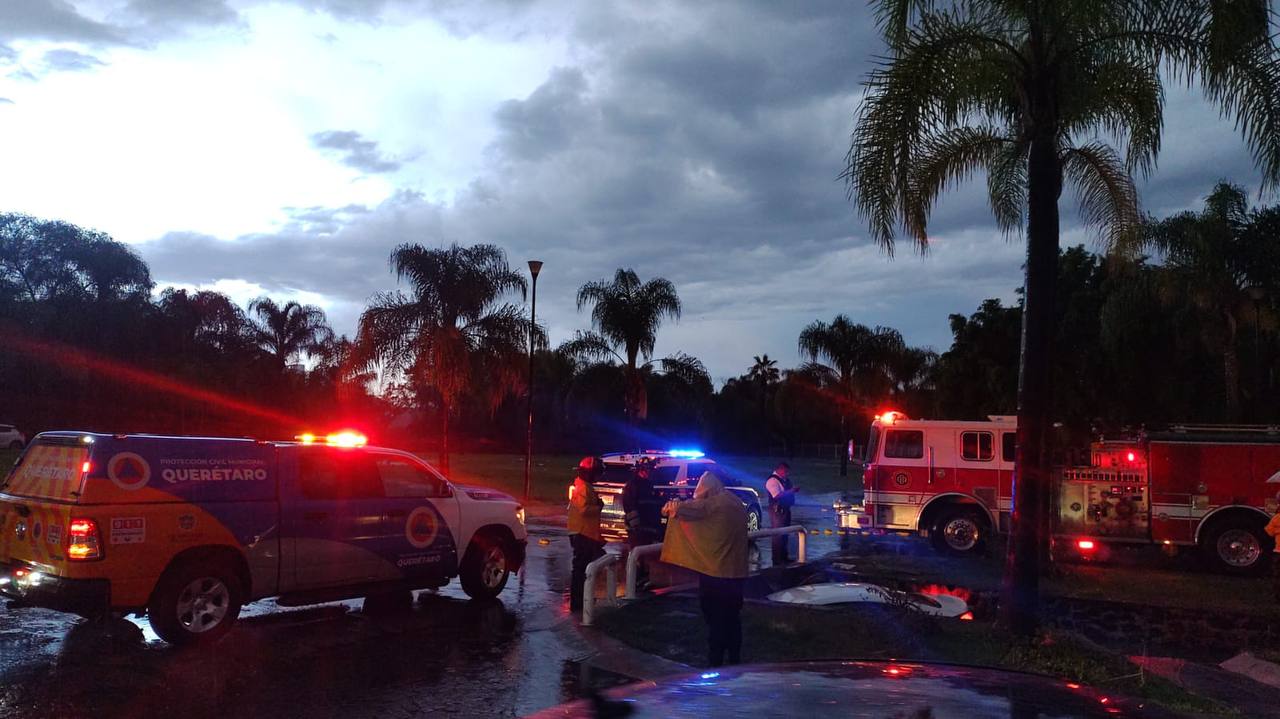 En la colonia Jurica, los escurrimientos pluviales rebasaron el nivel de banqueta, por lo que personal de Seguridad Pública y Policía Estatal procedió al cierre de algunas de sus vialidades para que el personal de la CEA y Servicios Públicos Municipales realizaran las maniobras necesarias para el desalojo del agua.