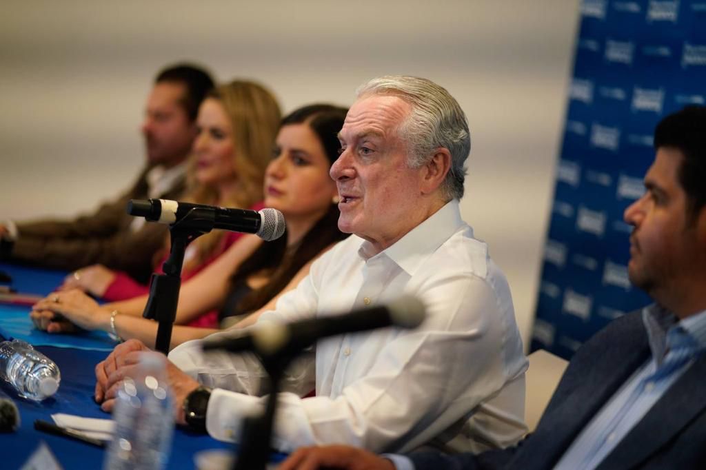En la conferencia de prensa estuvo acompañado por la presidenta estatal del PAN, Leonor Mejía; el secretario general, Claudio Sinecio; y las diputadas federales Paulina Aguado y Marcia Solórzano.