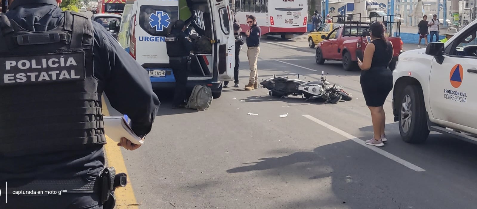 La mujer tripulaba una motocicleta Italika 250 Z en color negro con blanco con placas 35TTZ4 para Querétaro y circulaba en dirección a Santa Bárbara cuando a la altura de la Plaza Citadina, un hombre en aparente estado de ebriedad cruzó de manera imprudente el Paseo Constituyentes y la mujer ya no pudo frenar, por lo que lo embistió y proyectó varios metros, cayendo ella también a la carpeta asfáltica.