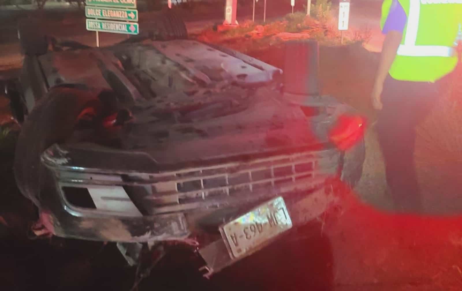 Según información recabada en el lugar, el conductor circulaba a exceso de velocidad y al tomar una curva perdió el control provocando que el vehículo volcara en varias ocasiones, derribando a su paso varias luminarias, hasta quedar con las llantas hacia el cielo.