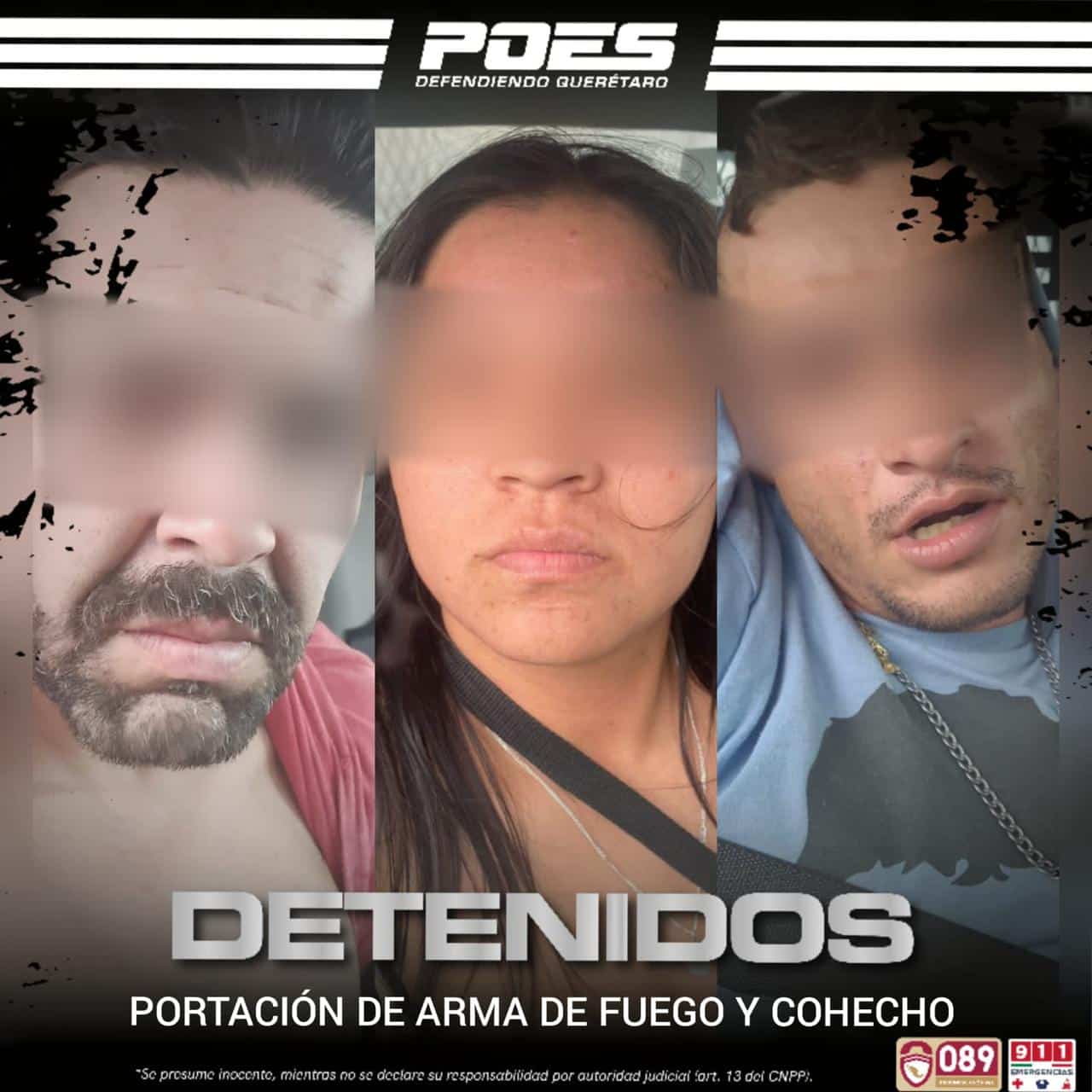 POES puso a disposición de la autoridad competente a tres personas que portaban un arma de fuego sin licencia, quienes además trataron de sobornar a los elementos que participaron en la intervención, al ofrecerles 115 mil pesos para eludir la detención.