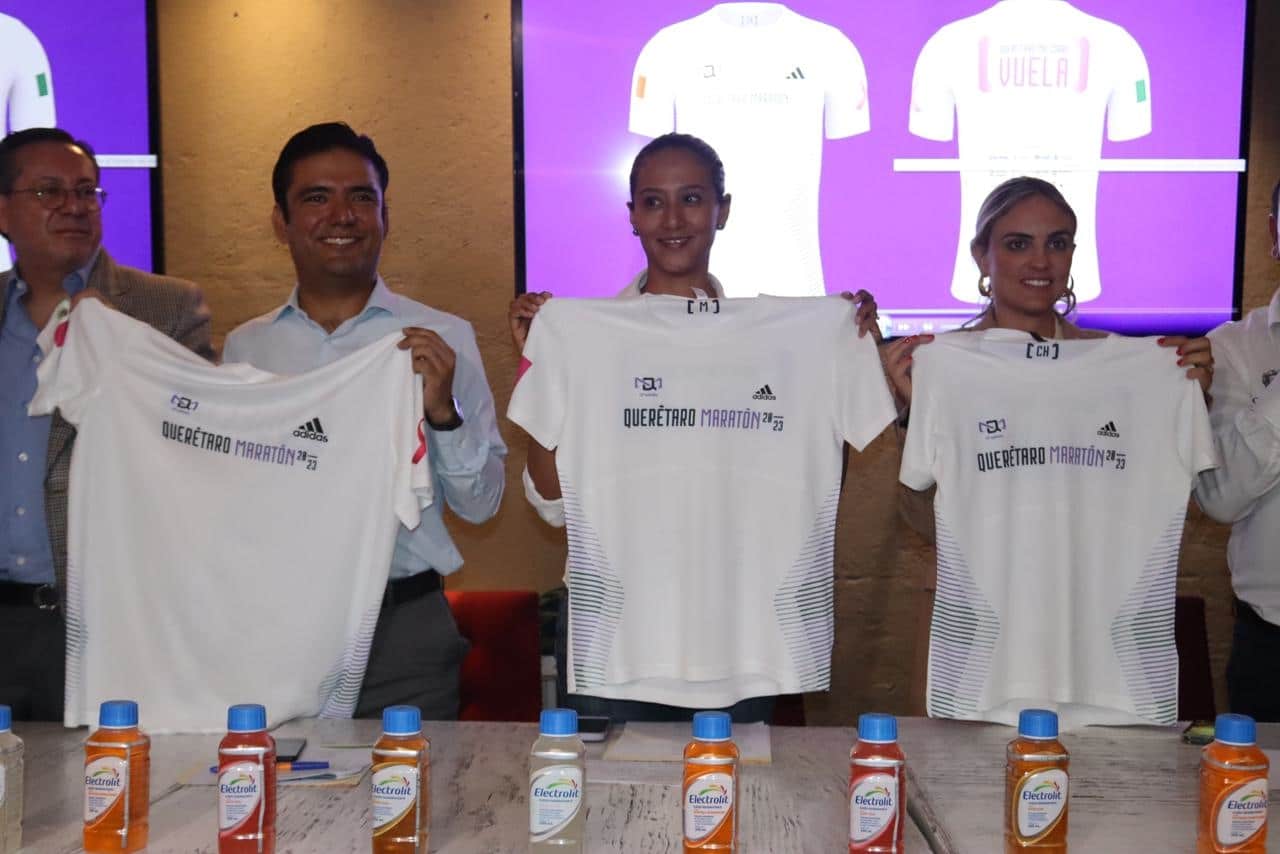 La directora General del Instituto del Deporte y la Recreación del Estado de Querétaro (INDEREQ), Iridia Salazar Blanco, presentó la playera conmemorativa del Querétaro Maratón en su edición 2023, la cual se caracteriza por estar diseñada con la tecnología “Aeroready”, que facilita la ventilación y frescura para los competidores.