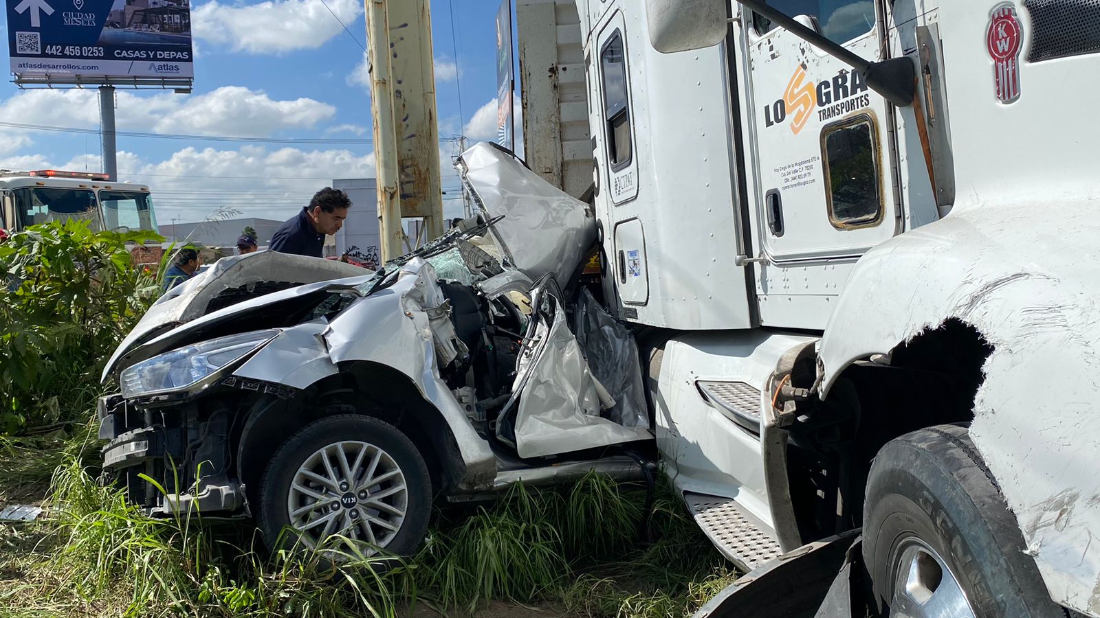 El accidente se registró cuando la mujer que conducía un auto compacto, intentó incorporarse de Peñaflor al Norponiente sin percatarse del tráiler que venía a alta velocidad, impactando el vehículo y prensandolo entre la carrocería del camión y el poste, partiendo a la mitad el carro.