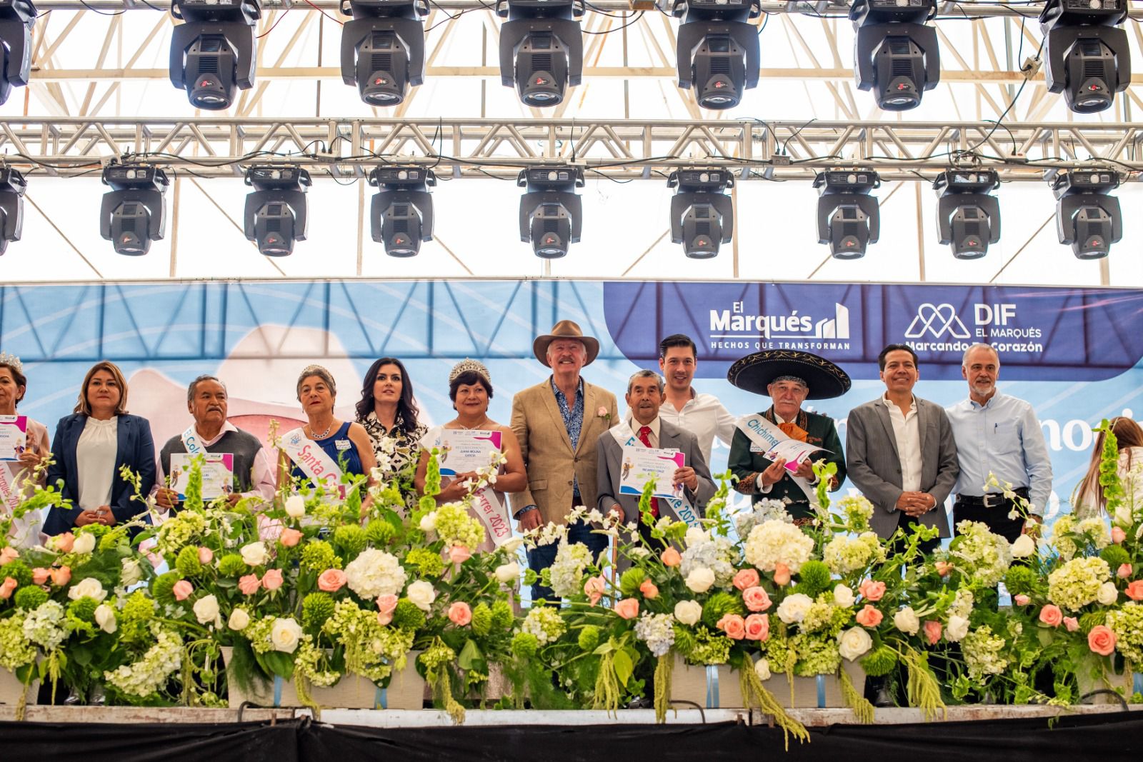 El presidente municipal de El Marqués, Enrique Vega Carriles, acompañado del jefe de la Oficina de la Presidencia, Rodrigo Monsalvo Castelán, encabezó la Coronación de la Reina y el Abuelo de Oro, evento organizado por el Sistema Municipal para Desarrollo Integral de la Familia (SMDIF) en las instalaciones del Ecocentro Expositor de Querétaro.