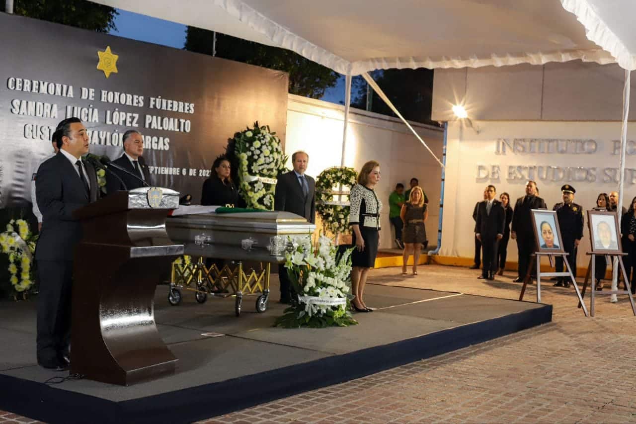 El Presiente Municipal de Querétaro, Luis Nava, en compañía de la Secretaria de Gobierno del Estado de Querétaro, Guadalupe Murguia Gutiérrez, encabezó la Guardia de Honor durante el Homenaje que se le realizó a Sandra Lucía López Paloalto y Gustavo Baylón Vargas, Policías de la Secretaría de Seguridad Pública Municipal que fallecieron el pasado martes 6 de septiembre al cumplir su labor de salvaguardar y velar por la paz social y el bienestar de las y los queretanos.