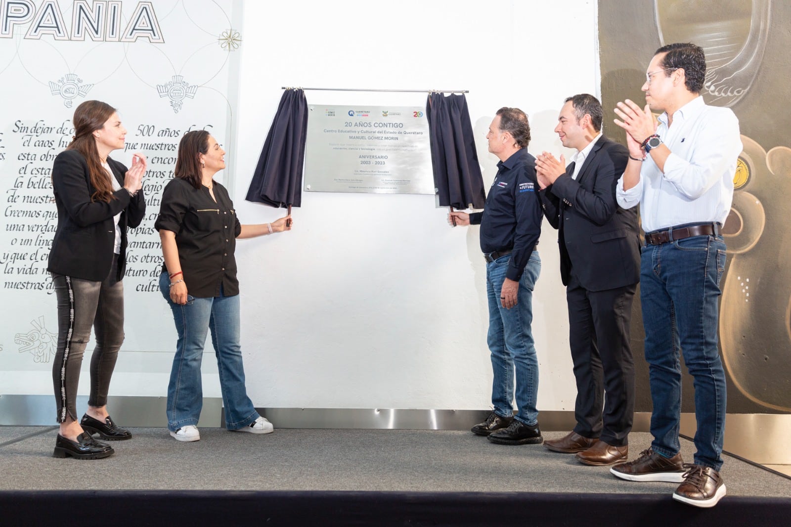 En el marco de las actividades por el vigésimo aniversario del Centro Educativo y Cultural del Estado de Querétaro Manuel Gómez Morin, el gobernador, Mauricio Kuri González, encabezó la develación de una placa conmemorativa, la cual expresa un reconocimiento a este espacio que inspira a contar historias y crear nuevas perspectivas en educación, ciencia y tecnología, con un gran talento humano.