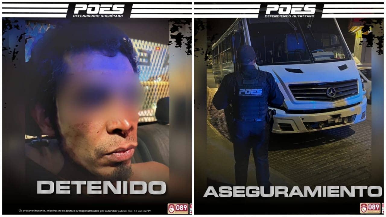 Un individuo que robó un camión de transporte de personal, fue detenido por POES minutos después de cometer el acto en el municipio de El Marqués.