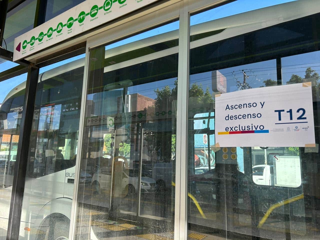Además, se estableció una puerta exclusiva para hacer ascenso y descenso de usuarios de la nueva ruta T12, lo que ha ocasionado que se generen fila para que el resto de unidades pueda hacer su parada.