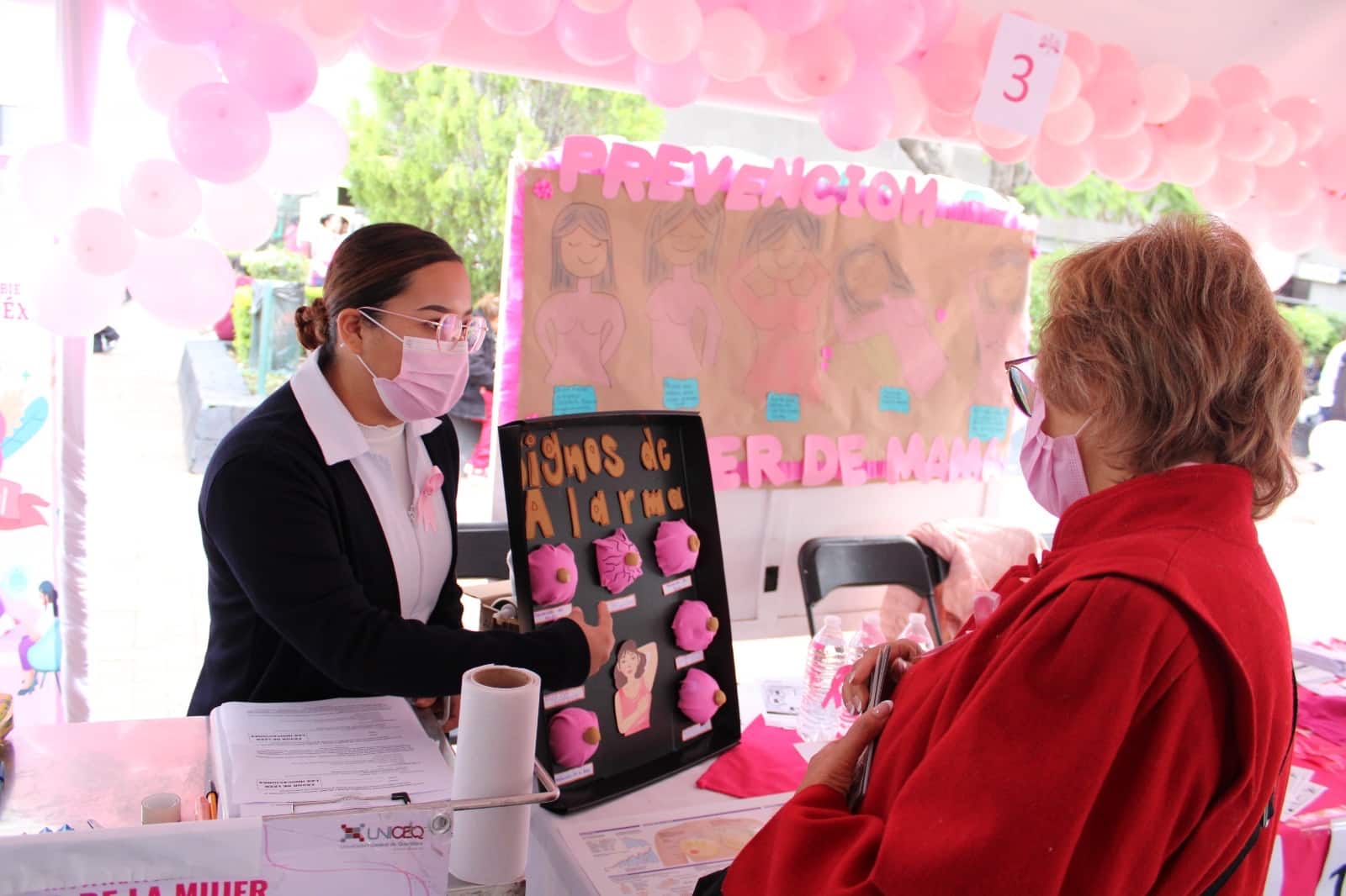 Cabe mencionar que durante esta, más de 100 mujeres y hombres participaron en la formación de un lazo humano rosa conmemorativo por el Mes de Sensibilización sobre el Cáncer de Mama), con el fin de fomentar la detección temprana e iniciar un tratamiento adecuado.