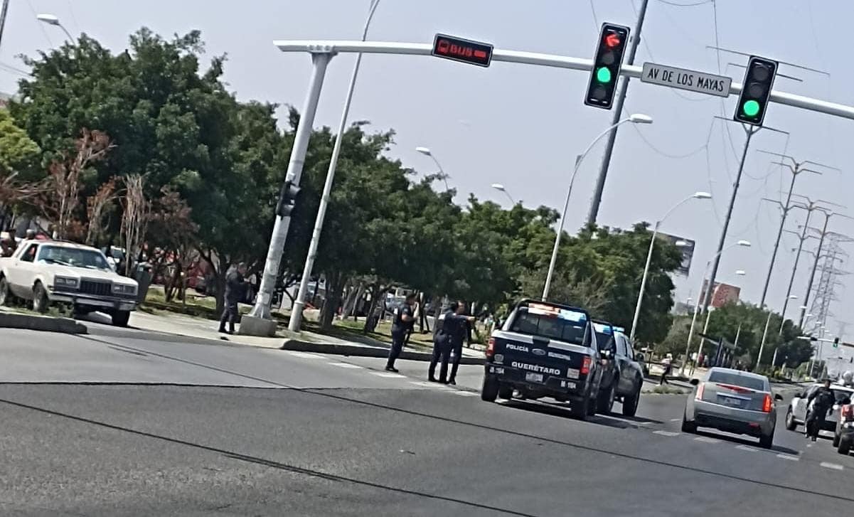 Esta mañana se registró un aparatoso choque entre una patrulla de la policía municipal y un automóvil particular, en los semáforos de Avenida de la Luz y Avenida Mayas, en la colonia Cerrito Colorado.