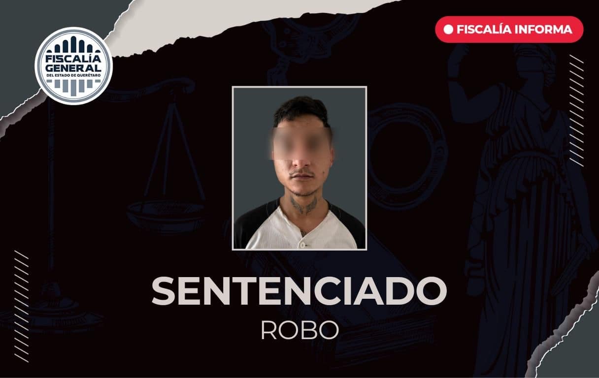 La Fiscalía de Querétaro obtuvo sentencia condenatoria en contra Cristian Adrián “N”, por su responsabilidad en el delito de robo calificado, cometido en agravio de un comerciante de equipos de sonido, en el municipio de El Marqués.